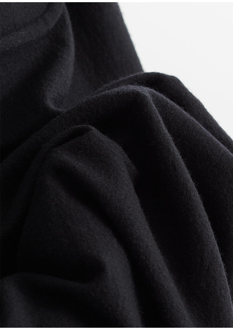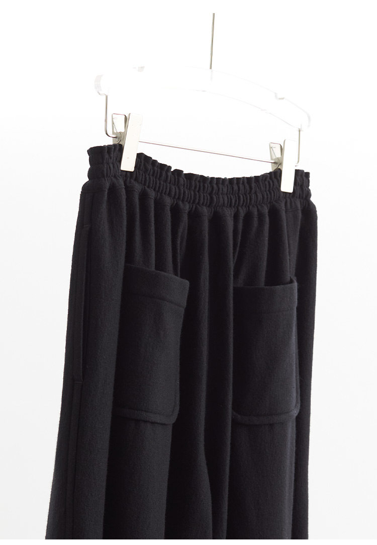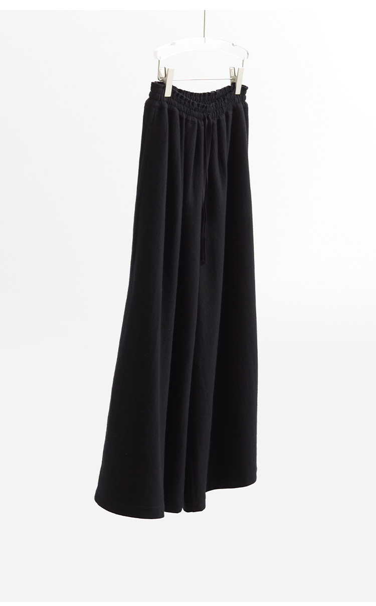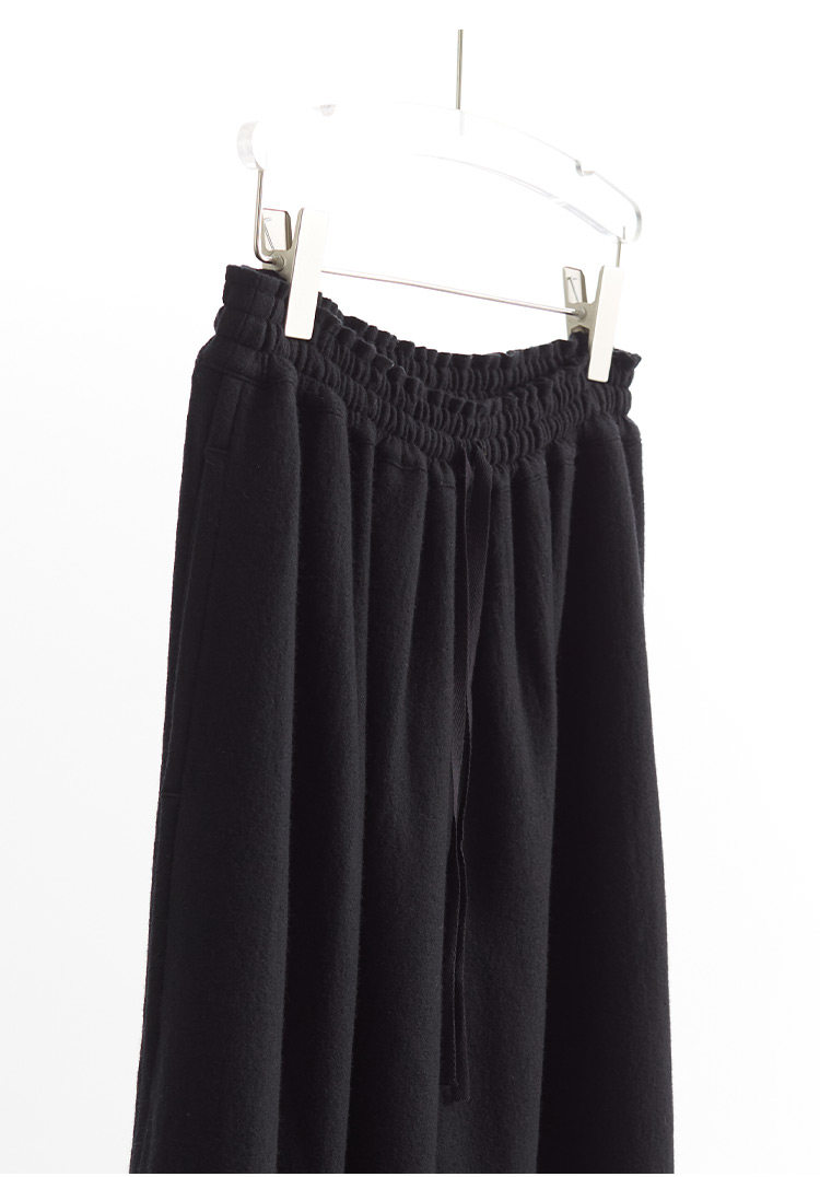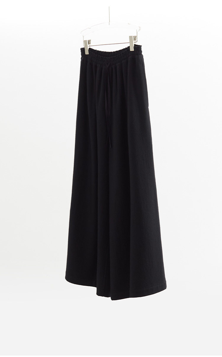 Heavyweight knitted wool fabric, 100% pure wool.The body feels more comfortable.The drape is just right. the knit structure enhances the fall, and the wool's lightweight nature prevents it from being too heavy or drooping excessively.Therefore, these pants can create the silhouette of samurai pants without looking round.