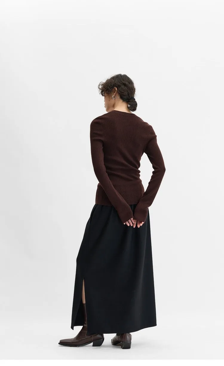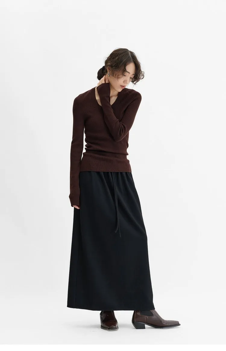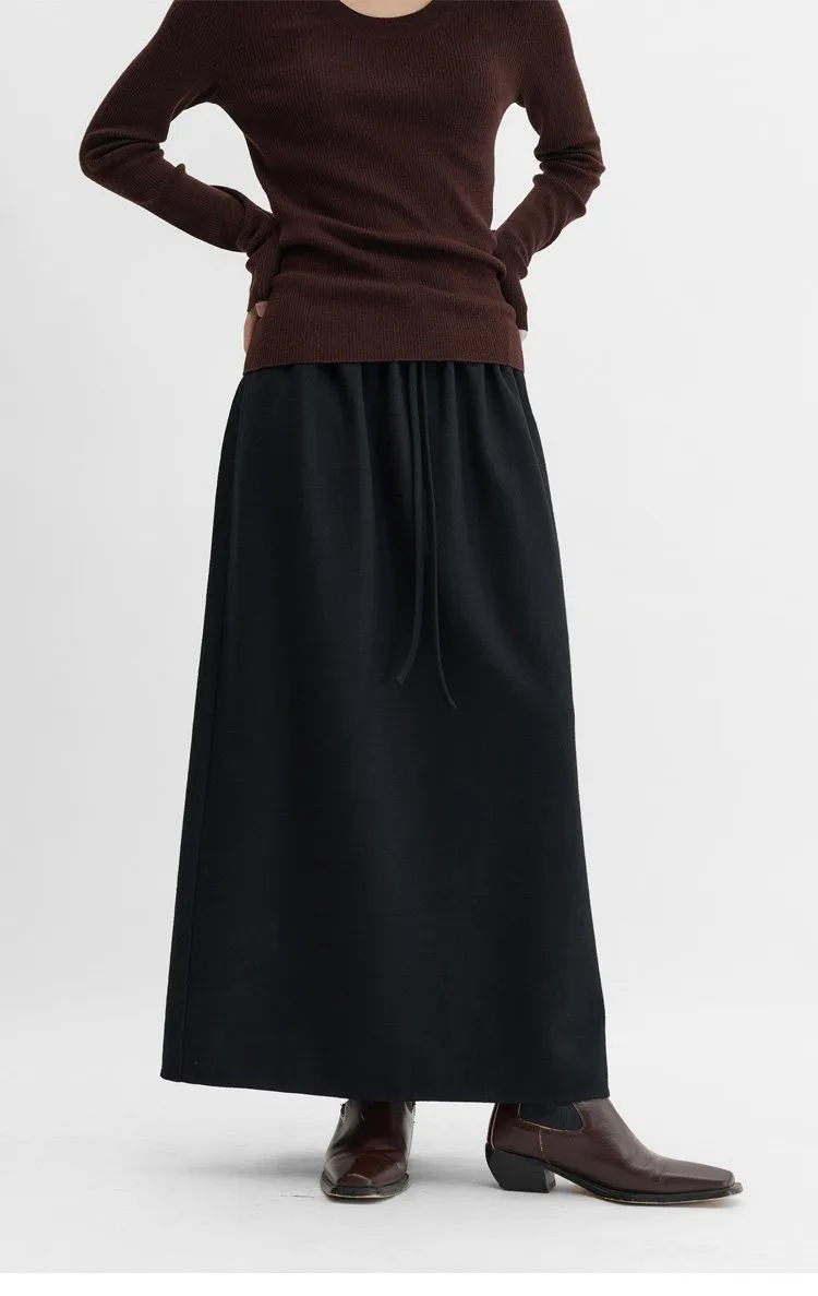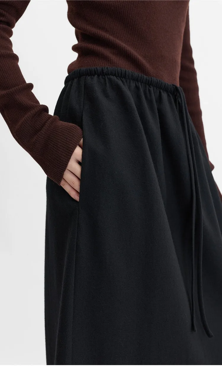 Elastic Waist 100% Wool Skirt, Women's High-Waisted Mid-Length Skirt, New Style for Autumn and Winter 2026